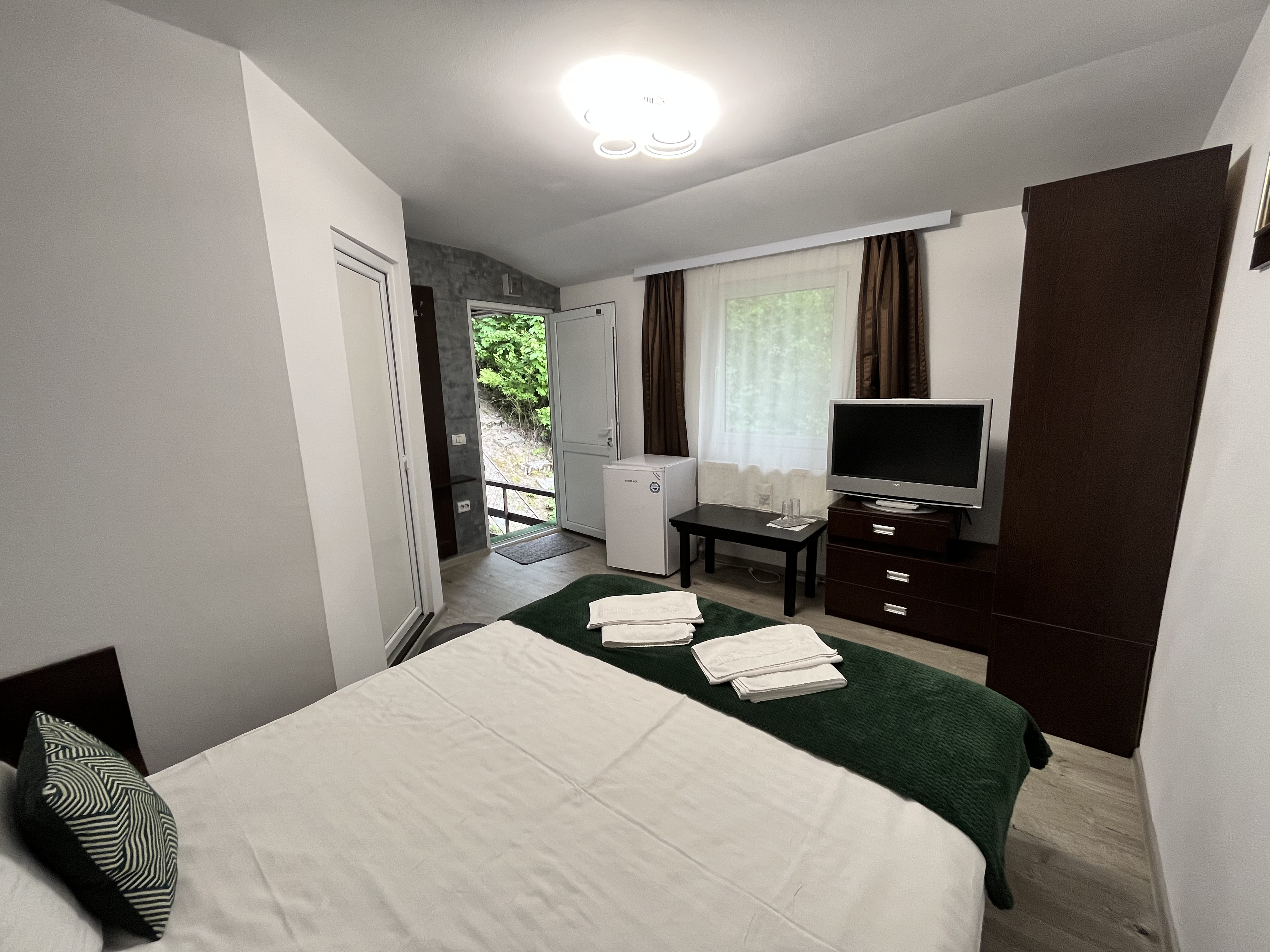 Toate camerele duble standard ( 14 mp ) sunt poziționate la -1 si se bucură de terasă proprie cu măsuță. Cafeaua servită în liniștea dimineții poate fi o adevărată experiență ce te va încărca cu energie bună.