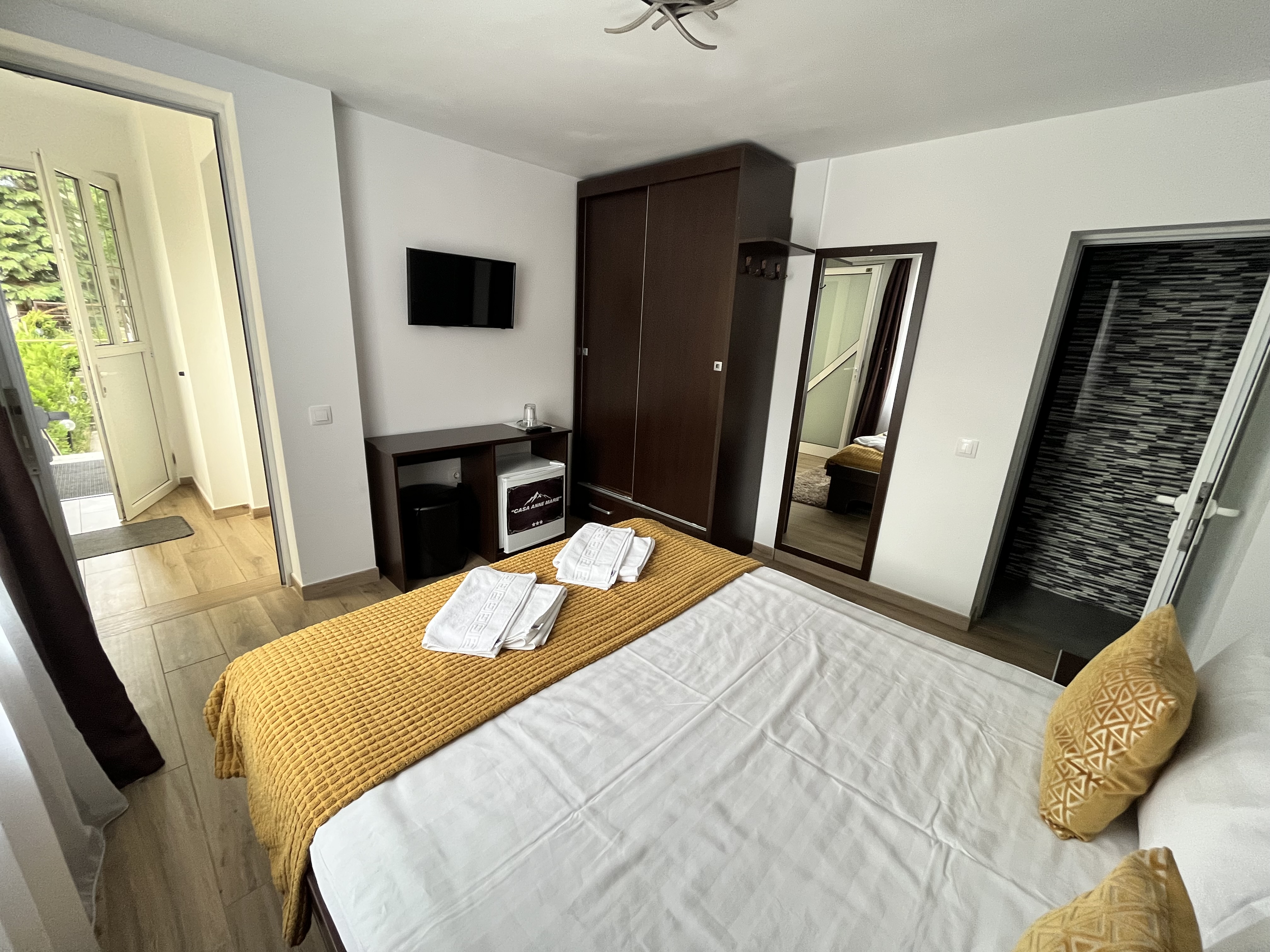 Toate camerele duble standard ( 14 mp ) sunt poziționate la -1 si se bucură de terasă proprie cu măsuță. Cafeaua servită în liniștea dimineții poate fi o adevărată experiență ce te va încărca cu energie bună.