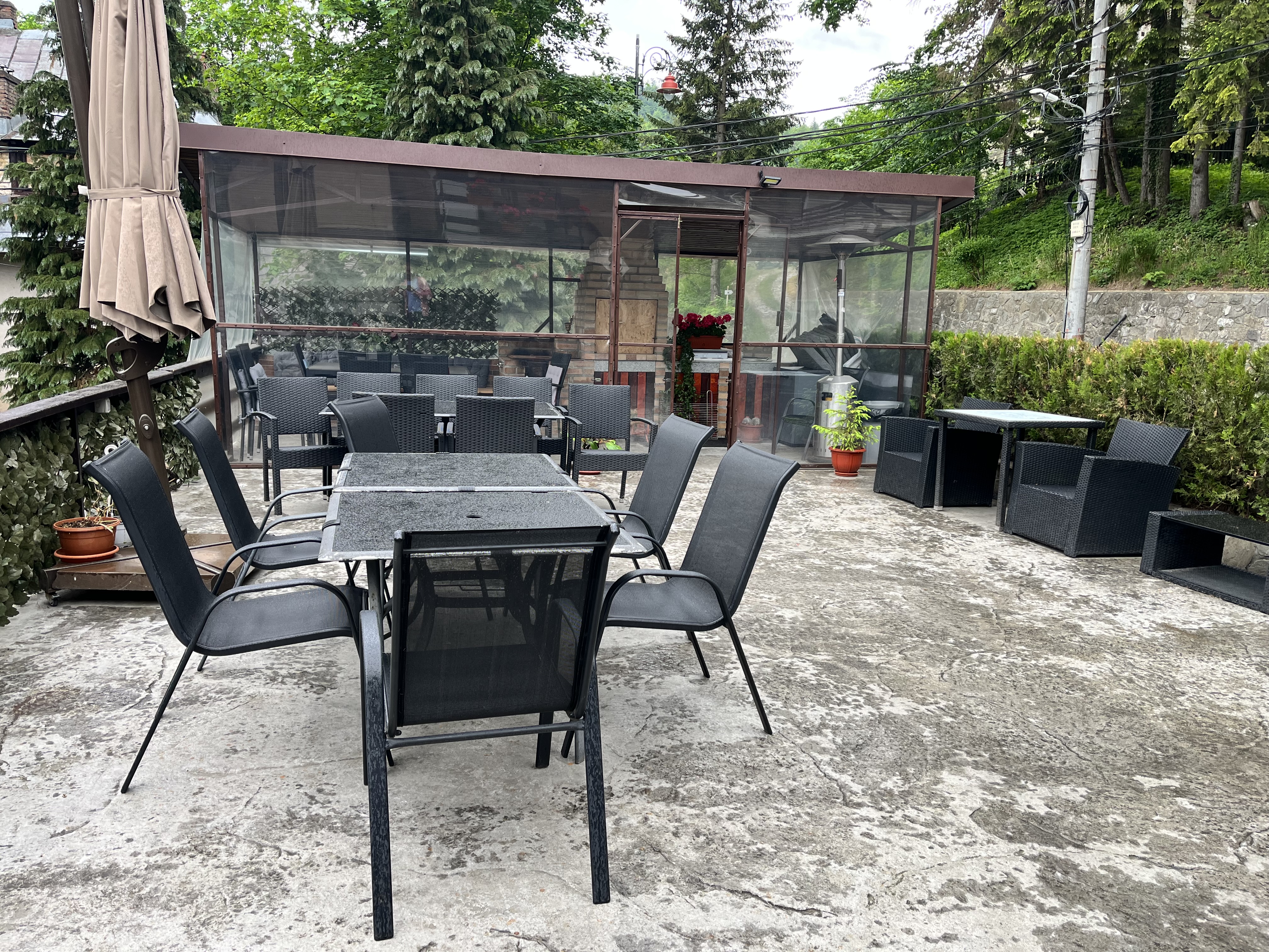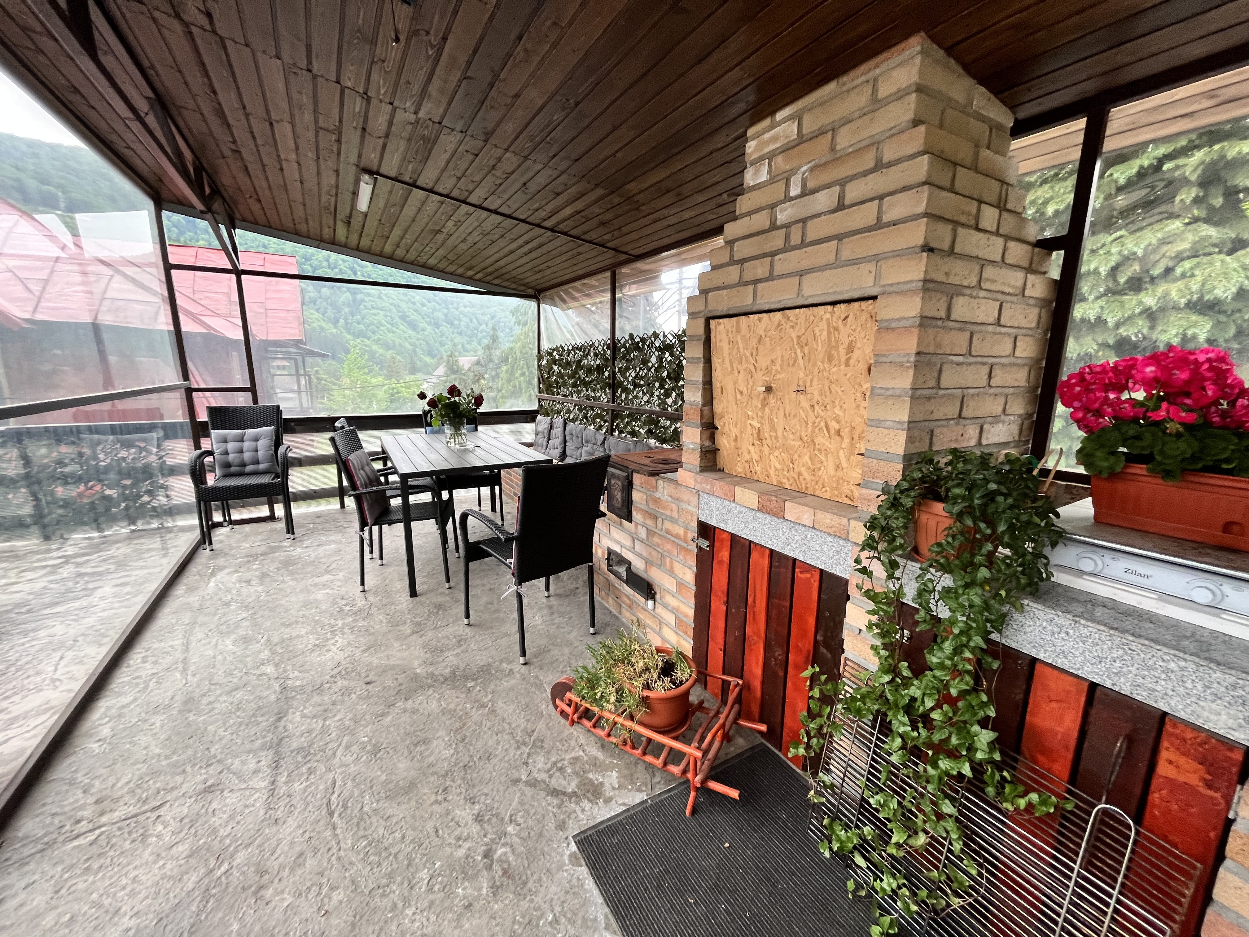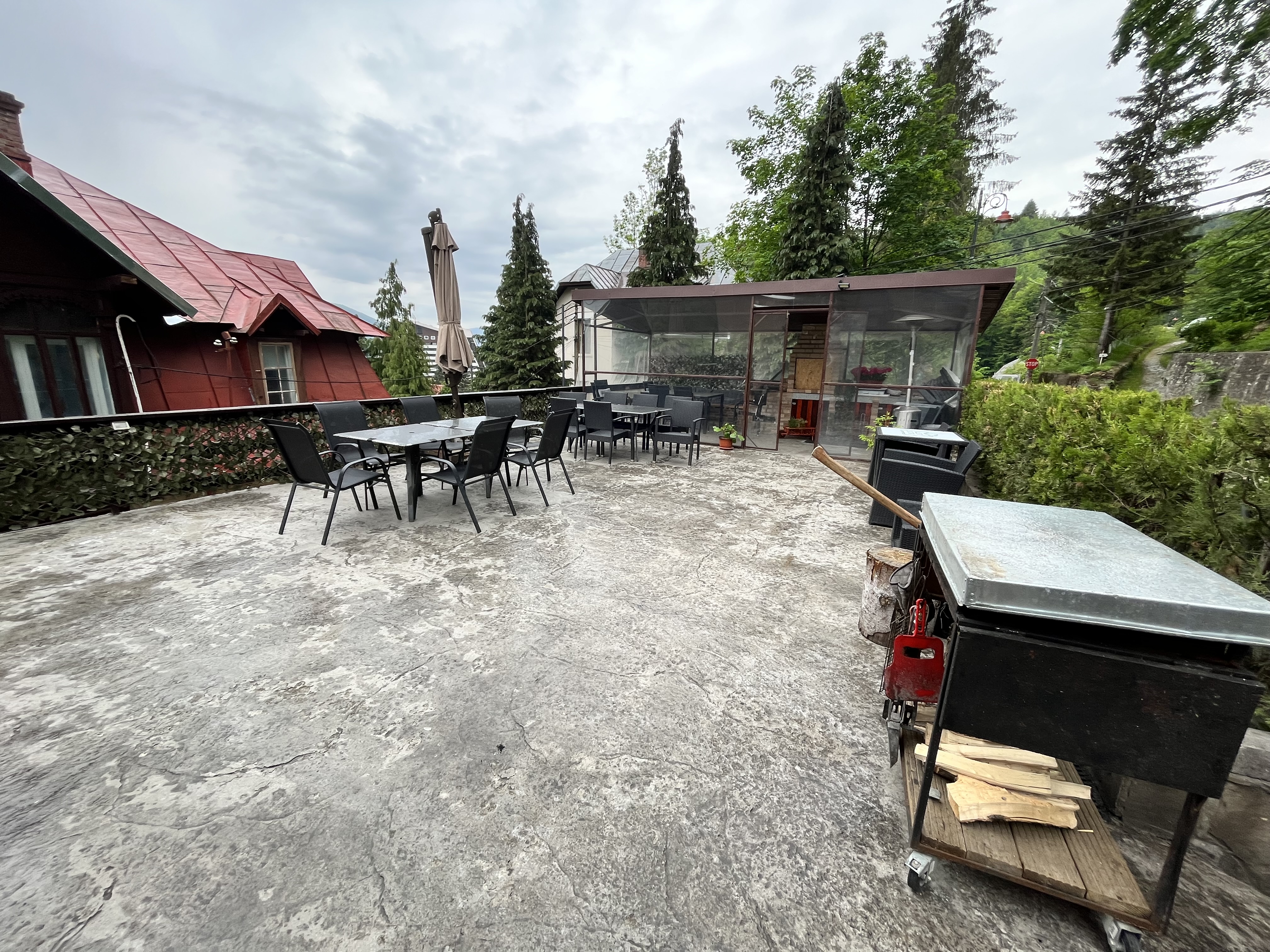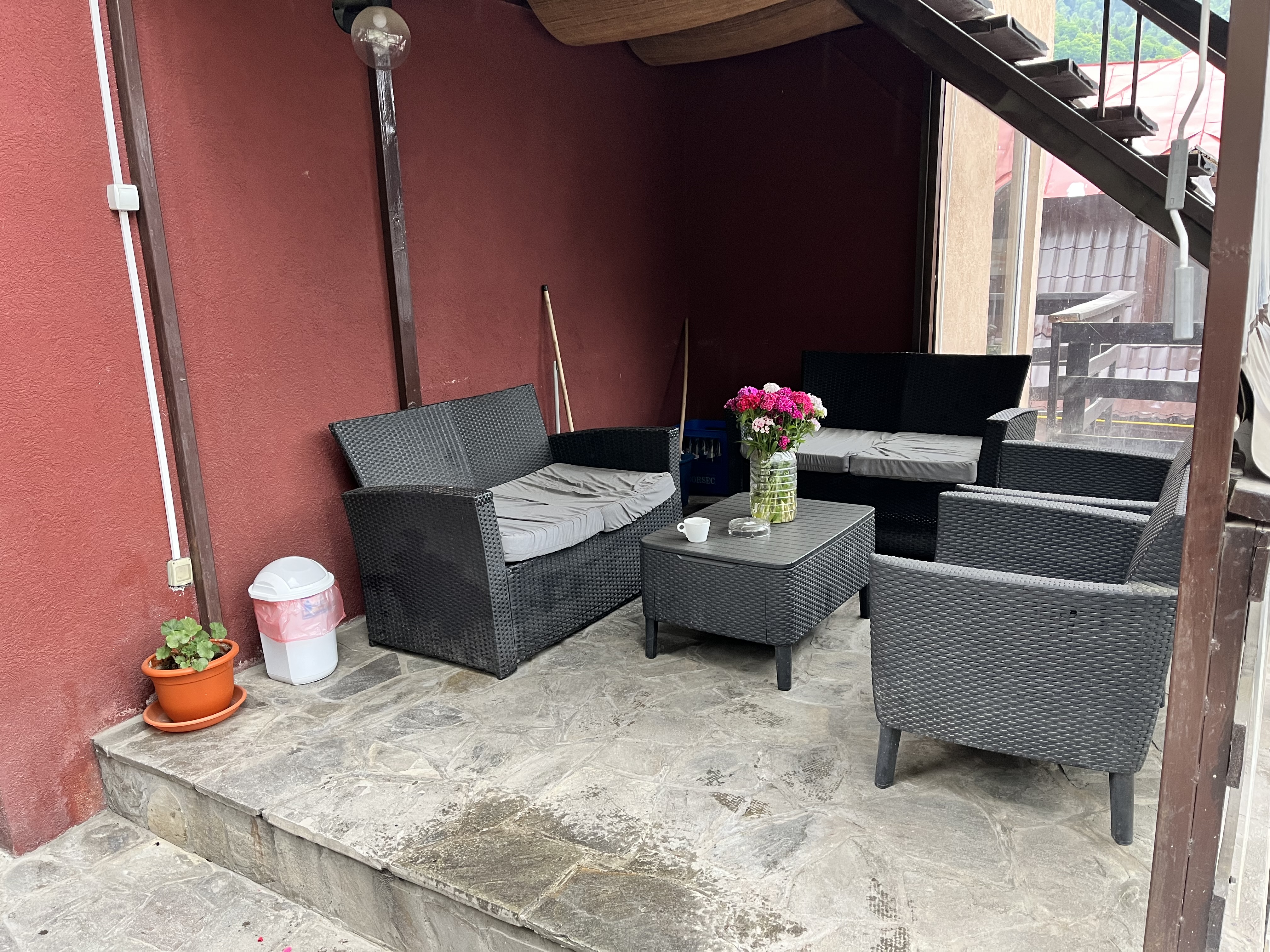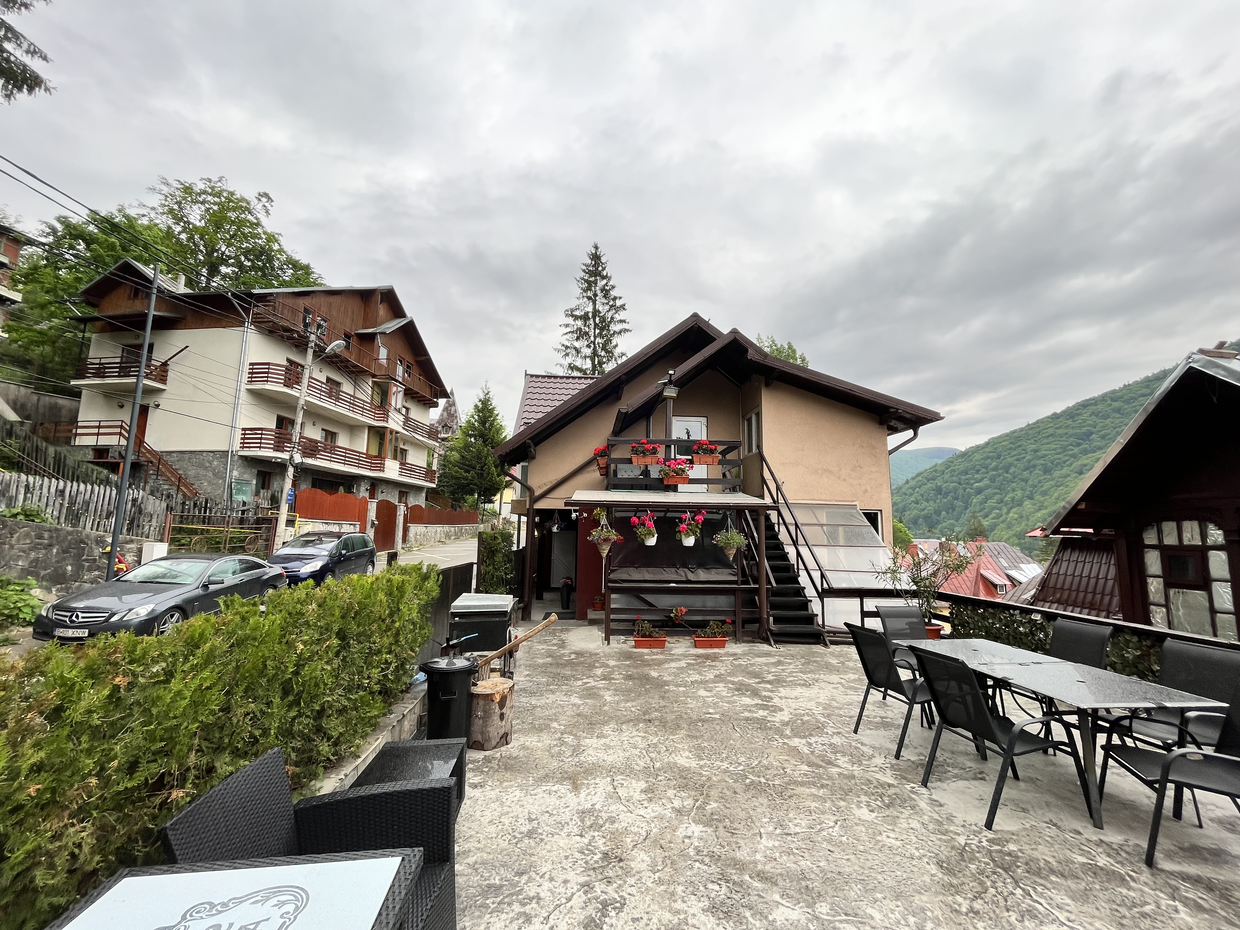 Oaspeții se pot bucura de mese pe terasa unitatii. Aceștia au la dispoziție o bucatarie complet utilata cu baie, aragaj, cuptor cu microunde, frigider, spatiu de luat masa in interior.
