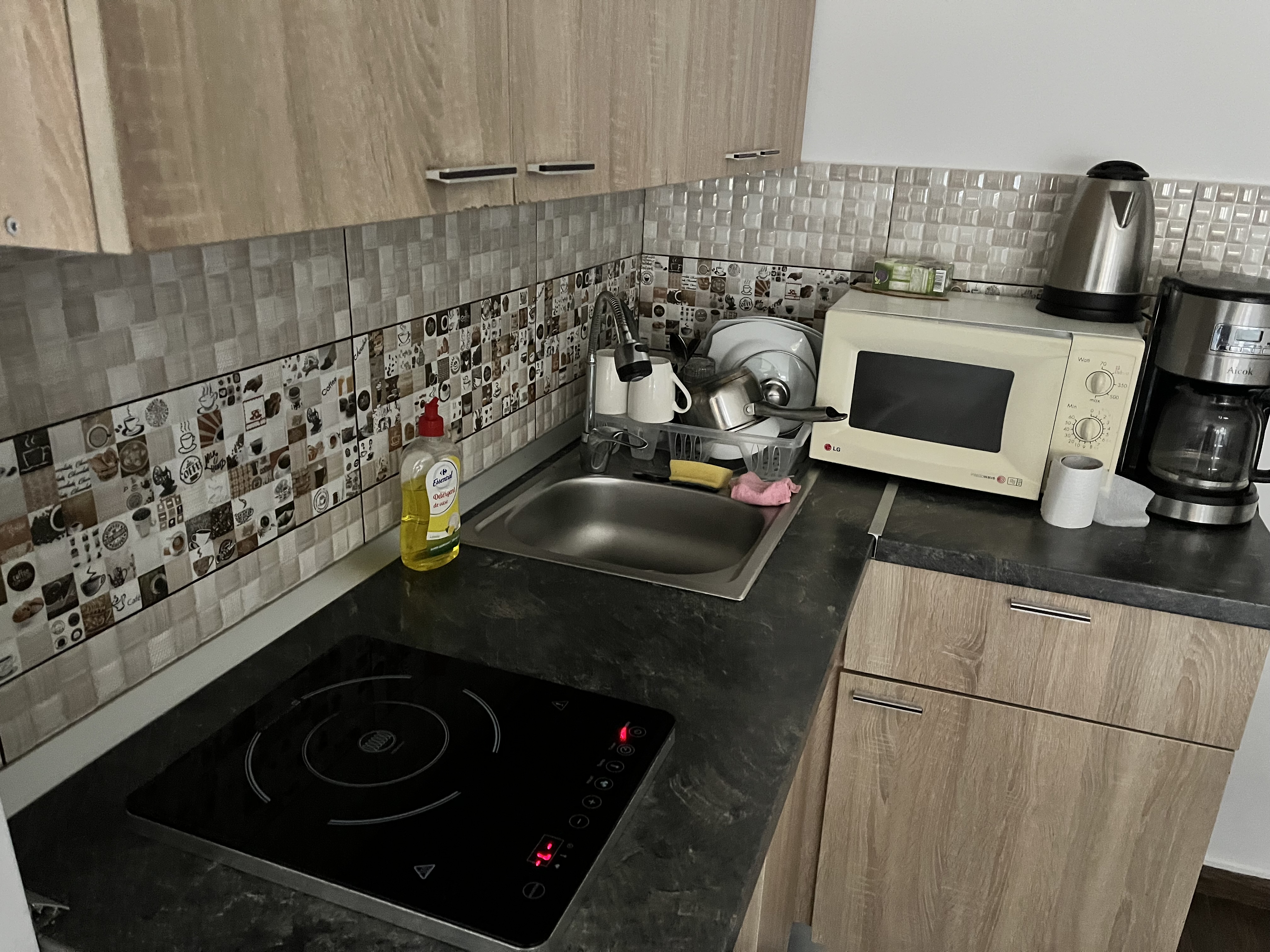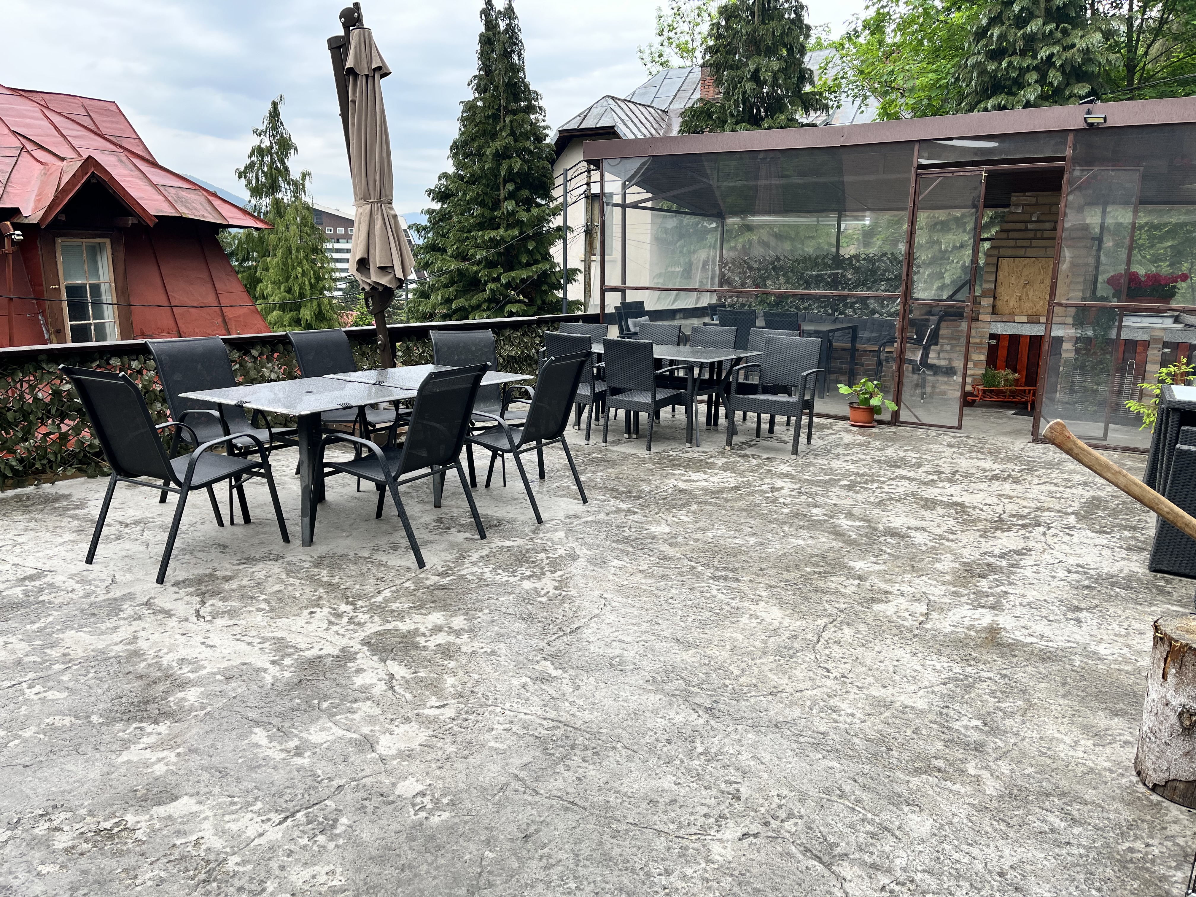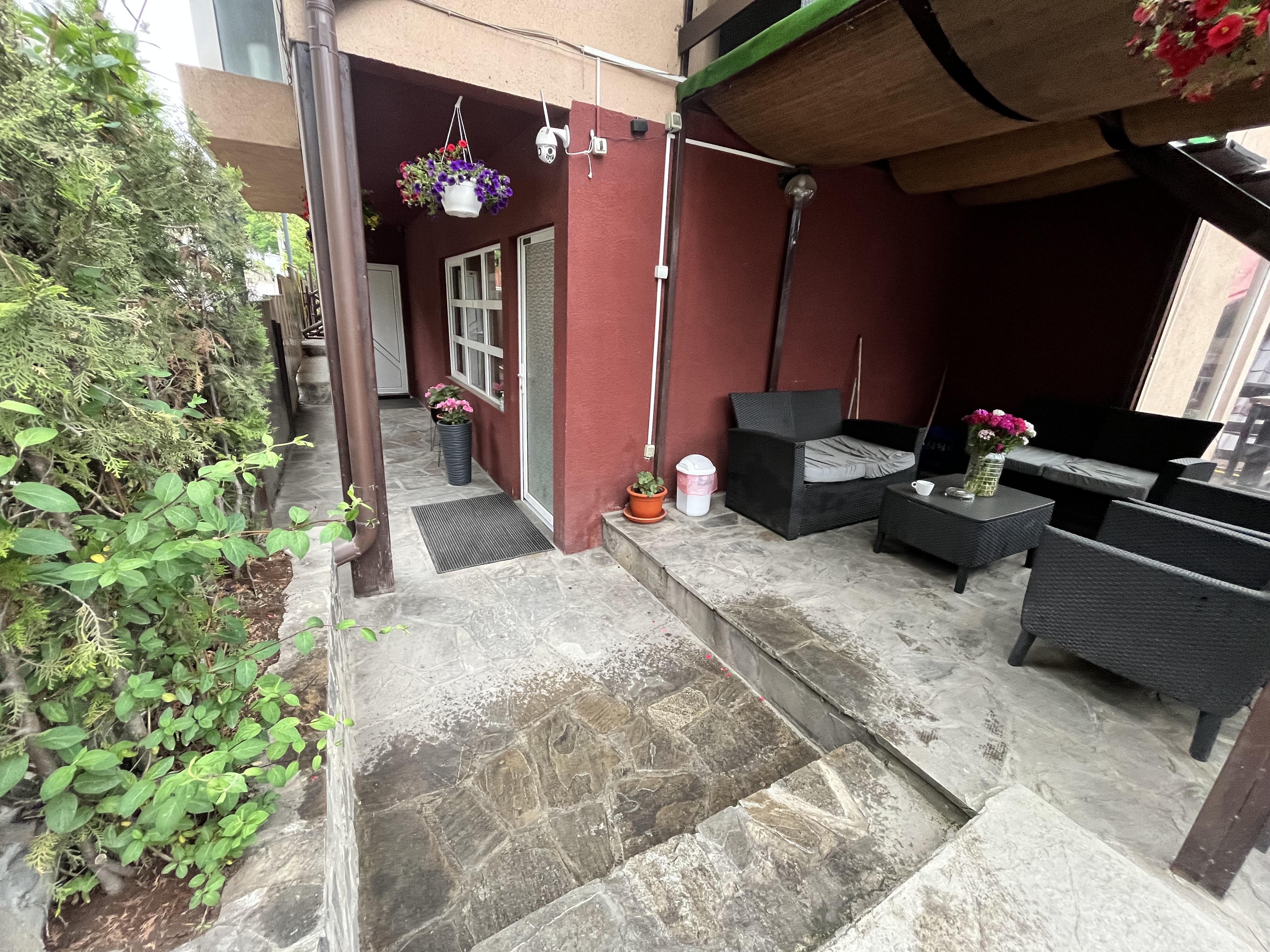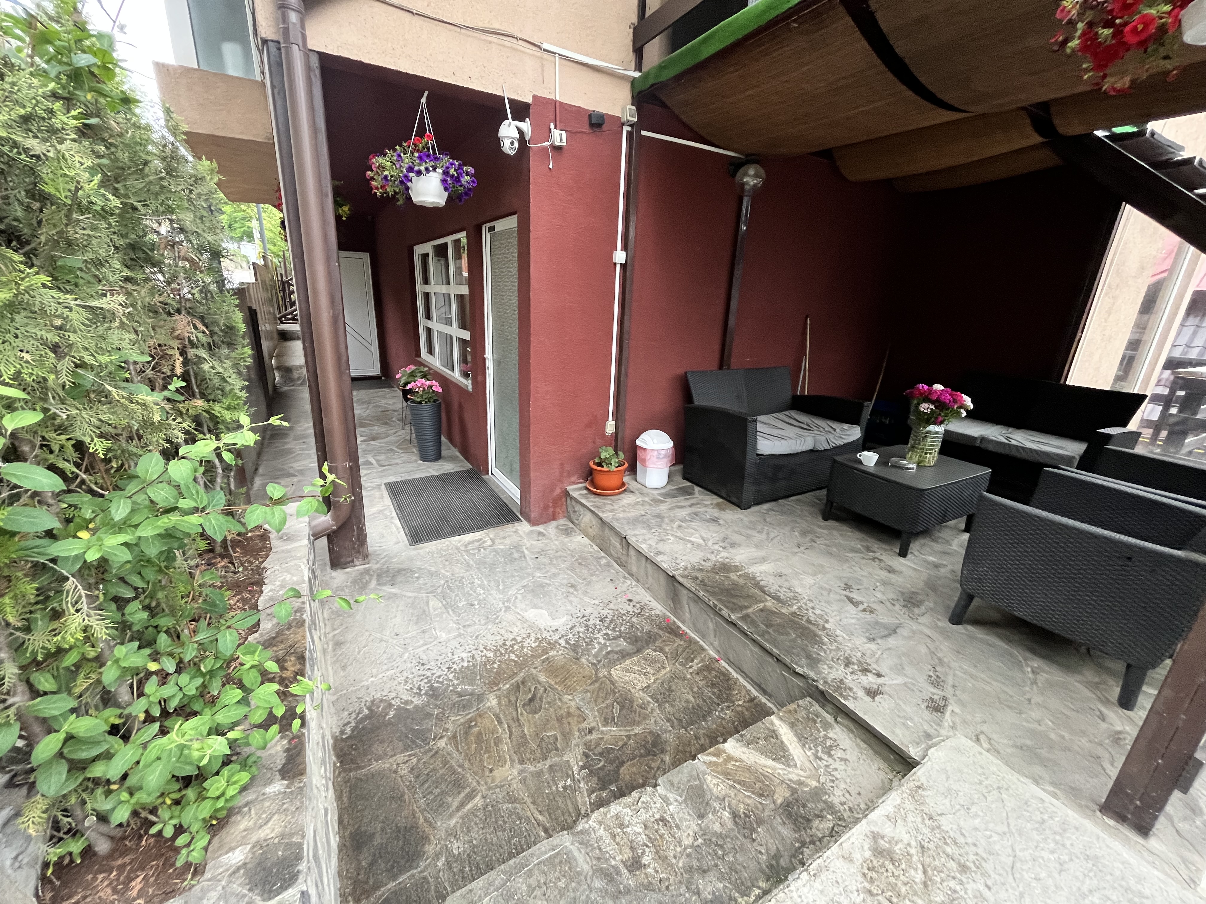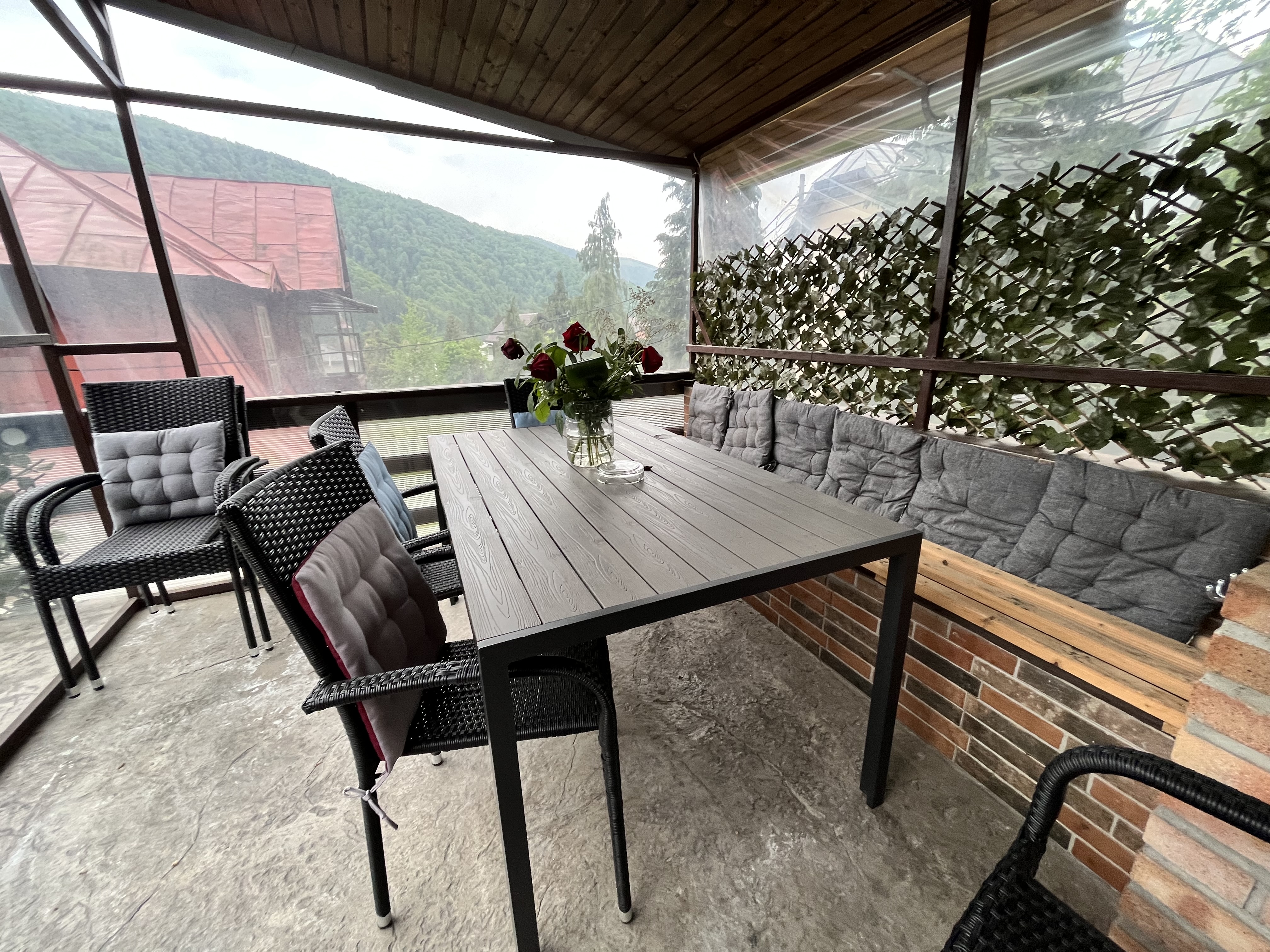 Oaspeții se pot bucura de mese pe terasa unitatii. Aceștia au la dispoziție o bucatarie complet utilata cu baie, aragaj, cuptor cu microunde, frigider, spatiu de luat masa in interior.